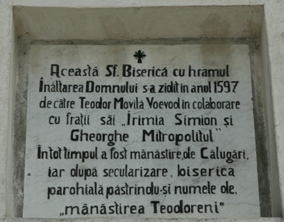 Ansamblul Mănăstirii Teodoreni este alcătuit din următoarele 4 obiective: Biserica Înălţarea Domnului care dateaza din secolul al XVI-lea, chiliile vechi, construite pe la sfârşitul secolului al XVI-lea, turnul clopotniţă, datând din 1597 si zidul de incintă construit mult mai tarziu in secolul al XVIII-lea. Un lucru important pe care vreau sa-l mentionez este ca aici s-a aflat singurul portret pictat al cronicarului Miron Costin.